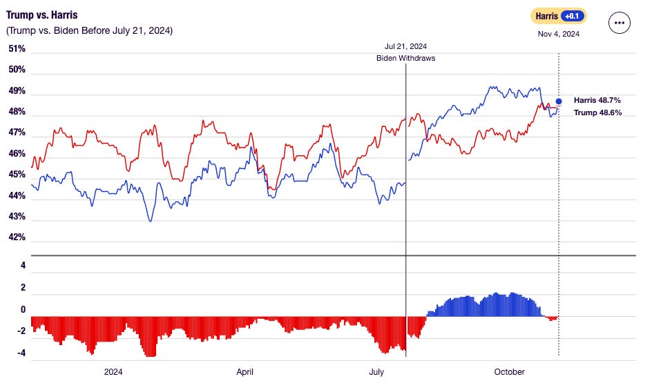Obsahu k volbám jsou všude hromady, takže dnešní newsletter využijeme hlavně jako rozcestník na obsah, které mainstreamu trochu unikají. A přidáme pár zajímavých grafů o tom, jak si vlastně USA aktuálně stojí.