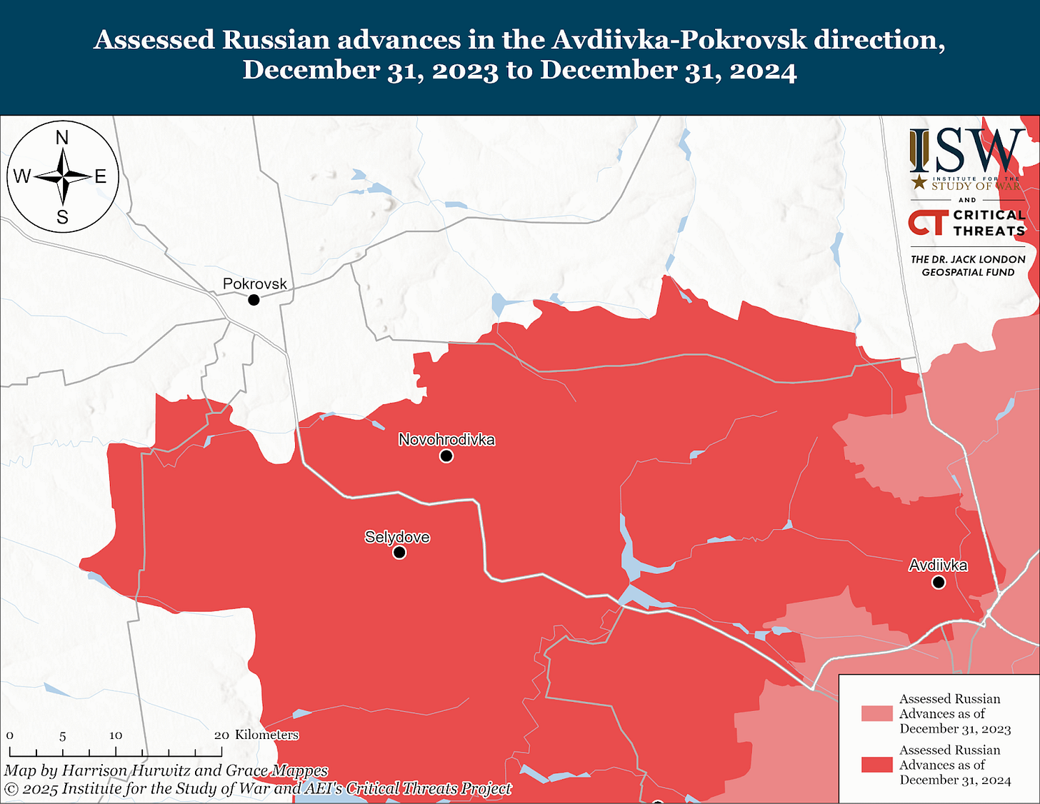 Vojtěch Bahenský a Matyáš Zrno se shodují, že v loňském roce byl nejvýznamnější událostí na frontě pád Avdijivky, po němž následoval postup ruských sil na západ směrem k Pokrovsku – klíčovému železničnímu uzlu zajišťujícímu logistiku ukrajinské armády. Od té doby urazili Rusové za cenu značných lidských a materiálních ztrát přibližně 50 km: „Na poměry války na východě je to poměrně dost,“ poznamenává Zrno, zároveň však vyjadřuje přesvědčení, že Pokrovsk do rukou agresora nepadne.