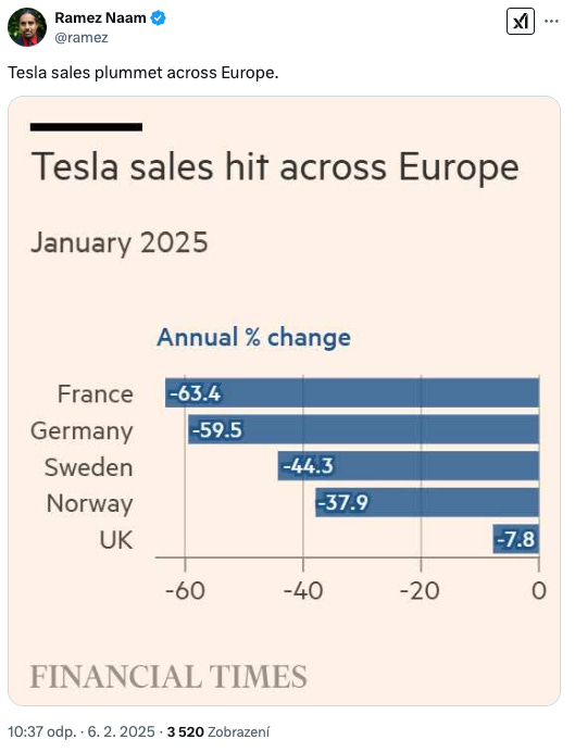 Adopce elektromobilů Tesla v EU pokračuje vskutku výborně 🙈