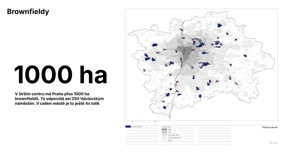 … a jen v širším centru brownfieldové plochy celkově velké jako 250 Václaváků (!!!)