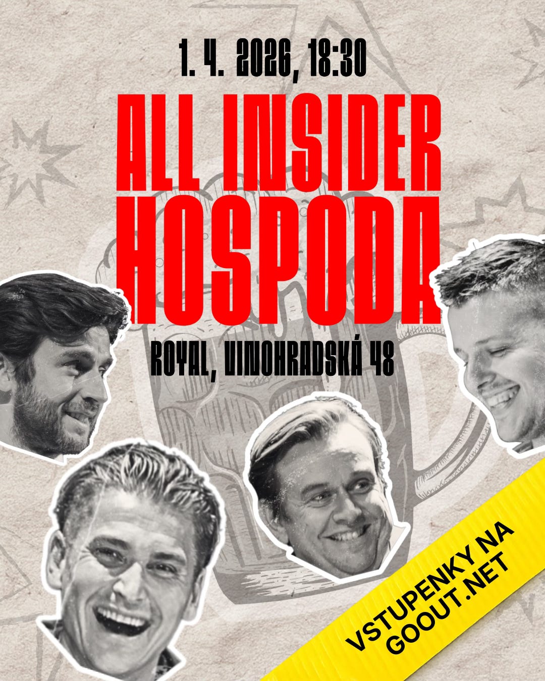 Dalším chystaným eventem je aprílová ALL INSIDER Hospoda, která již tradičně bude plná zábavy a moderátoři Tomáš Jirsa, Andy Dravecký, Michal Půr a Ondřej Kania si pro vás připravili celou škálu témat. A my pro ně máme taky pár překvapení. Sejdeme se ve středu 1.4. od 18:30 ve vinohradském Royal Theatre.
