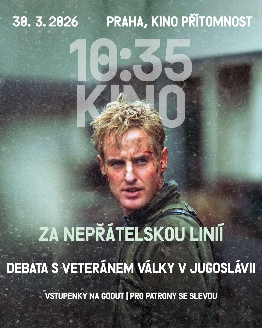 Tím prvním je promítání filmu Za nepřátelskou linií s podcastem 10:35 v pondělí 30. března. Na debatu před filmem dorazí Kristijan Fiket. Bývalý příslušník chorvatské protiteroristické jednotky Alfa, přímý účastník bojů v Jugoslávii a člověk, který v roce 1995 dostal od chorvatského prezidenta nejvyšší vojenské ocenění za statečnost.