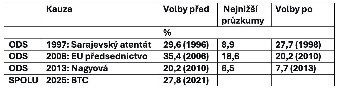Petr Fiala může být prvním premiérem ODS, který dovládne své kompletní premiérské období, pokud jeho vláda ustojí současnou bitcoinovou kauzu. A vše zatím nasvědčuje tomu, že ustojí. Přesto opozice svolala hlasování o nedůvěře, což je v české politice sporadicky vyskytující se akt. Podle průzkumu Medianu vládě nedůvěřuje 31,9 % voličů SPOLU z roku 2021. Níže proto přikládáme přehled toho, jak se občanským demokratům dařilo, když došlo na nejhorší – pád vlády a předčasné volby.