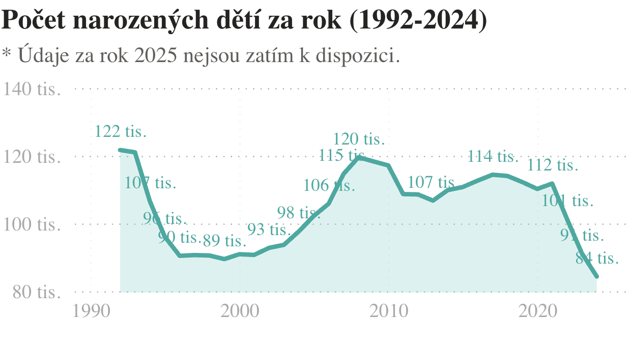 U nás můžeme být rádi za chlapce i děvčátka. Data o porodnosti jsou dost skličující. Loni statistici evidovali nejnižší porodnost od vzniku republiky. Narodilo se jen lehce přes 84 tisíc dětí. To je zhruba o 40 tisíc méně než v nejsilnějších ročnících 1993 a 2008. Český statistický úřad před pár dny vydal čtvrtletní zprávu o vývoji obyvatel. Narodilo se 18,1 tisíce dětí, meziročně o 2,9 tisíce, tedy o 14 %, méně. Pokračujeme v trendu a letošní rok bude pravděpodobně novým rekordem.