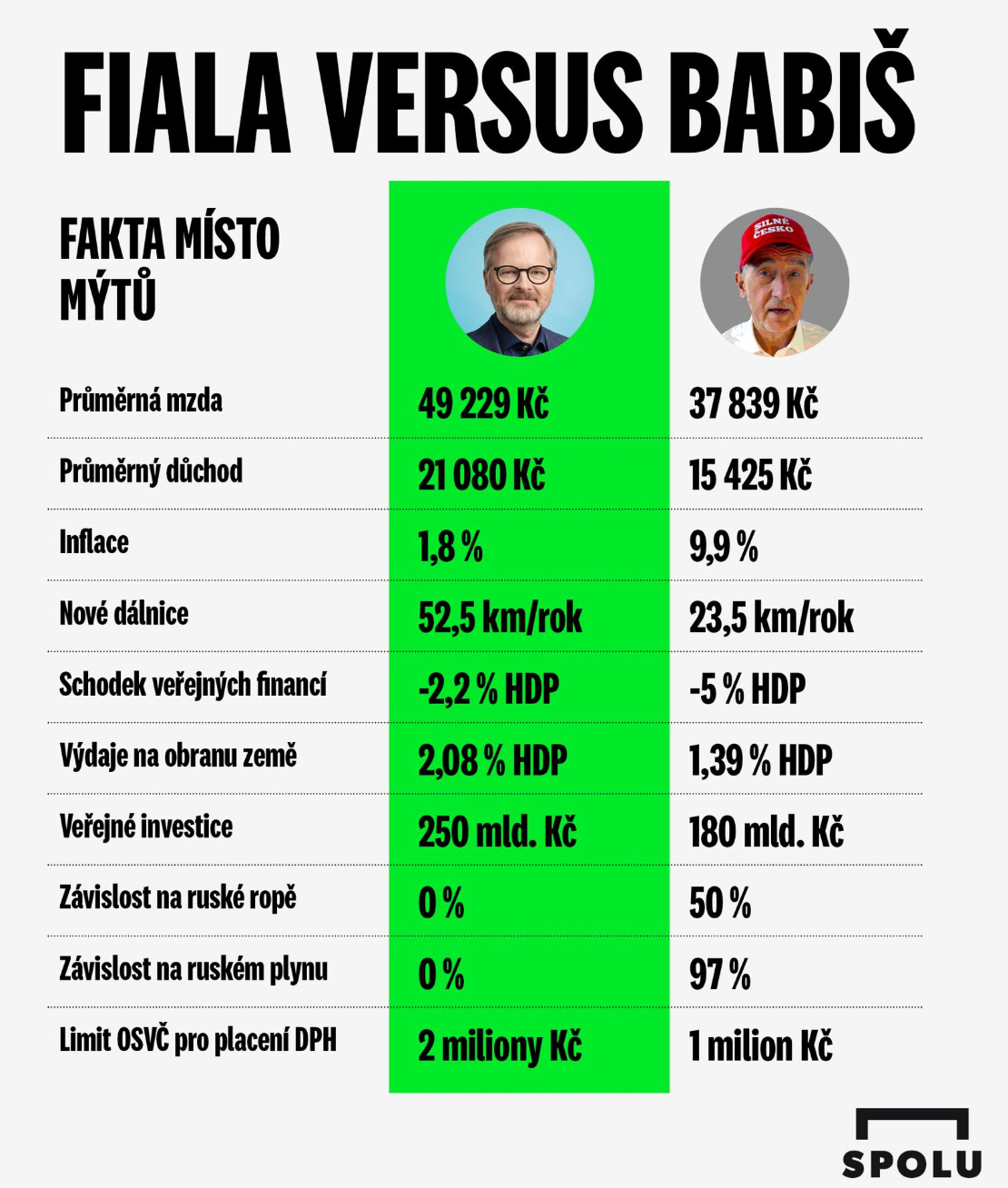 To podceňování voliče a jeho inteligence jsme už od Spolu zažili na jaře, když komunikační tým ODS sdílel tabulku Fiala vs. Babiš. Ta velmi zavádějícím až lživým způsobem porovnávala výši mezd, důchodů, inflace a dalších ukazatelů s hlavním sdělením: líp už je, takže nevěřte Andreji Babišovi, že se máte tak zle. Tenhle krásně populistický počin spoléhal na to, že jednoduchost v kampani zabírá, protože lidé si lépe zapamatují jednoduchá čísla a ne zhuštěný text nebo grafy.