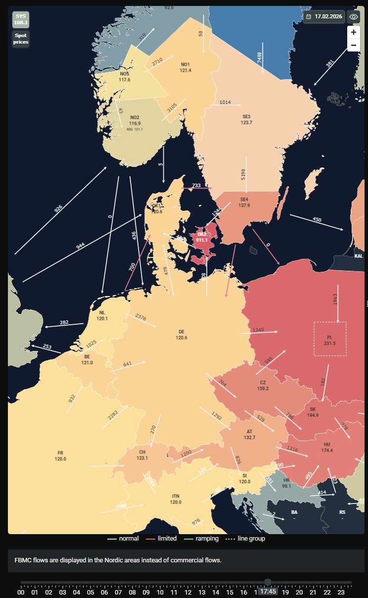 Výsledkem toho všeho byly tak podivné toky v celém regionu, že vyšponovaly DK2 až na již zmíněných 911 eur/MWh. Nikdo mi však nevymluví, že provozovatel dieselu či pozastavené továrny, který poslal na trh marginální nabídku, byl vášnivým milovníkem Porsche…