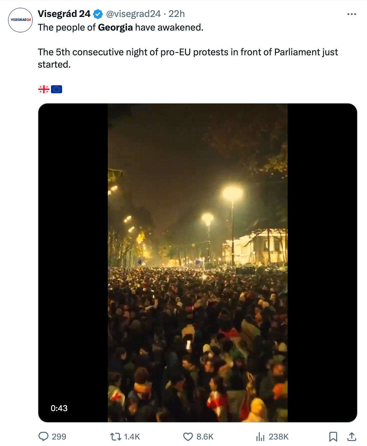 A za zmínku určitě také stojí Gruzie. Obyvatelé země protestují proti odklonu země od EU. Protesty trvají už pátý den.