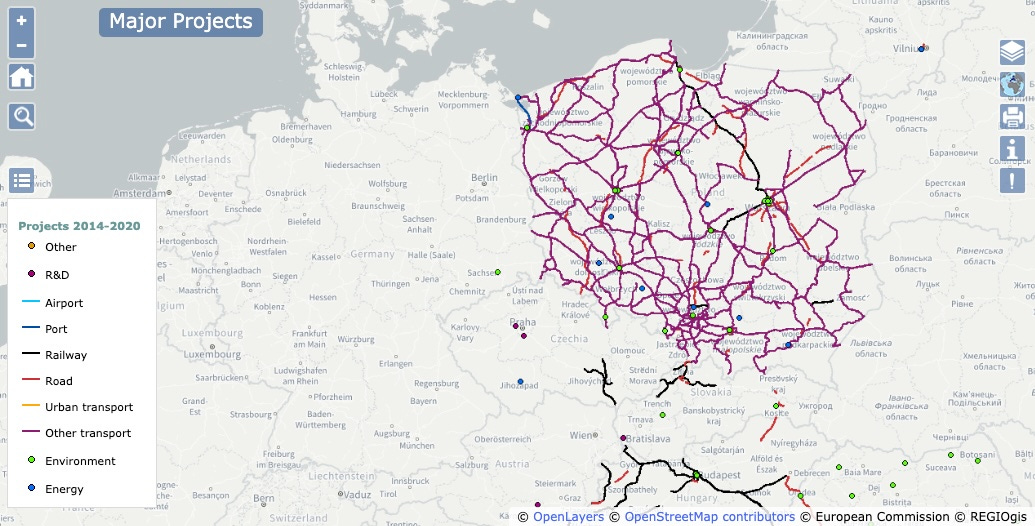 Níže je mapa infrastrukturních projektů EU v dotačním období 2014 - 2020, je z ní naprosto patrné, že alespoň v nějaké míře EU podpořila zásadní část infrastruktury, která se v Polsku stavěla. Zbytek Evropy oproti tomu vypadá, že zeje prázdnotou. Předchozí období 2007 - 2013 nevypadá o tolik jinak.