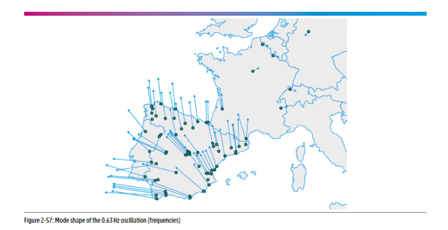 Aby toho nebylo málo, spotřeba už začala citelně převyšovat výrobu, takže ve Španělsku, a dokonce i Portugalsku začala klesat frekvence. Do toho vzrostl úhlový posun sinusoid mezi Pyrenejským poloostrovem a zbytkem kontinentální Evropy, poklesl synchronizační točivý moment iberského systému a obrátil se tok výkonu na té nejdůležitější hranici směrem z Francie do Španělska.
