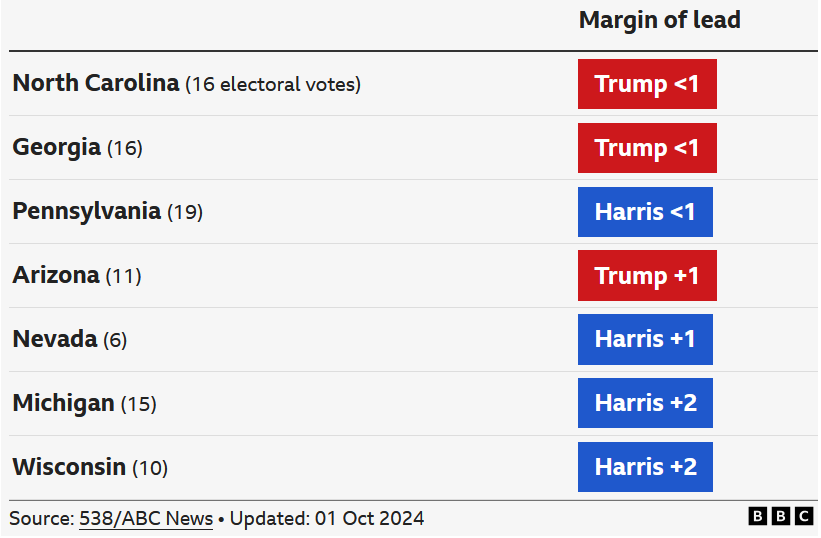 Na vyrovnanou bitvu to zatím vypadá i při pohledu na jednotlivé swing states.