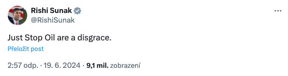 Dost ostrá jasná a přímočará “twitterová diplomacie” od britského premiéra Rishiho Sunaka v reakci na posprejovaný Stonehenge. Tak snad mu to ve volbách pomůže :)