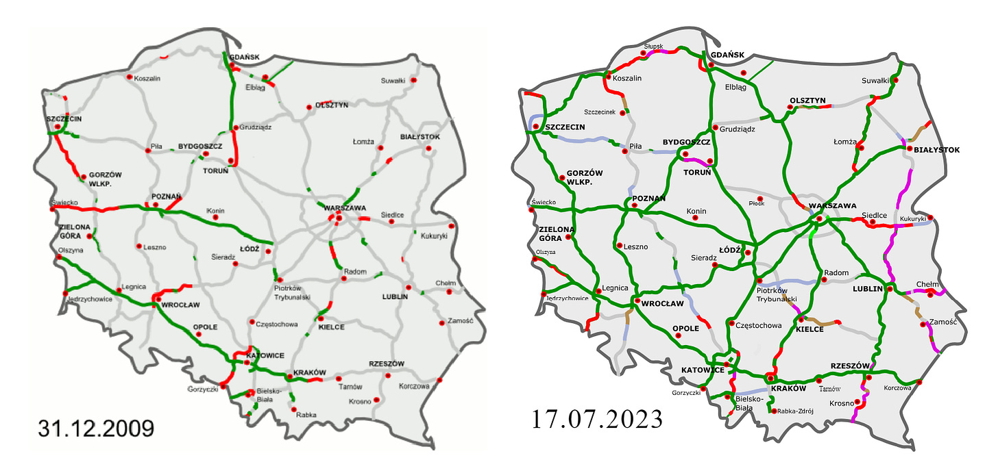 Plán pro české dálnice je ambiciózní, ale ne nemožný. Jak to jde udělat, nám ukazuje úctyhodný příklad Polska. Rozdíl mezi pohledem na mapu před patnácti lety a dnes mluví v podstatě za všechno. V číslech je propast mezi Českem a Polskem ještě patrnější. Mezi lety 2013 a 2022 stavěli poláci v průměru 253 kilometrů dálnic ROČNĚ. Představte si, kdyby vznikla každý rok i v Česku komunikace o délce větší než D1 mezi Prahou a Brnem…
