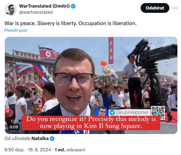 A tohle video zobrazujícího ruského “reportéra” v Severní Koreji je vskutku jak z Orwella. Už asi chápu, jak bizarní muselo být koukat ze západu na ČSSR za minulého režimu.