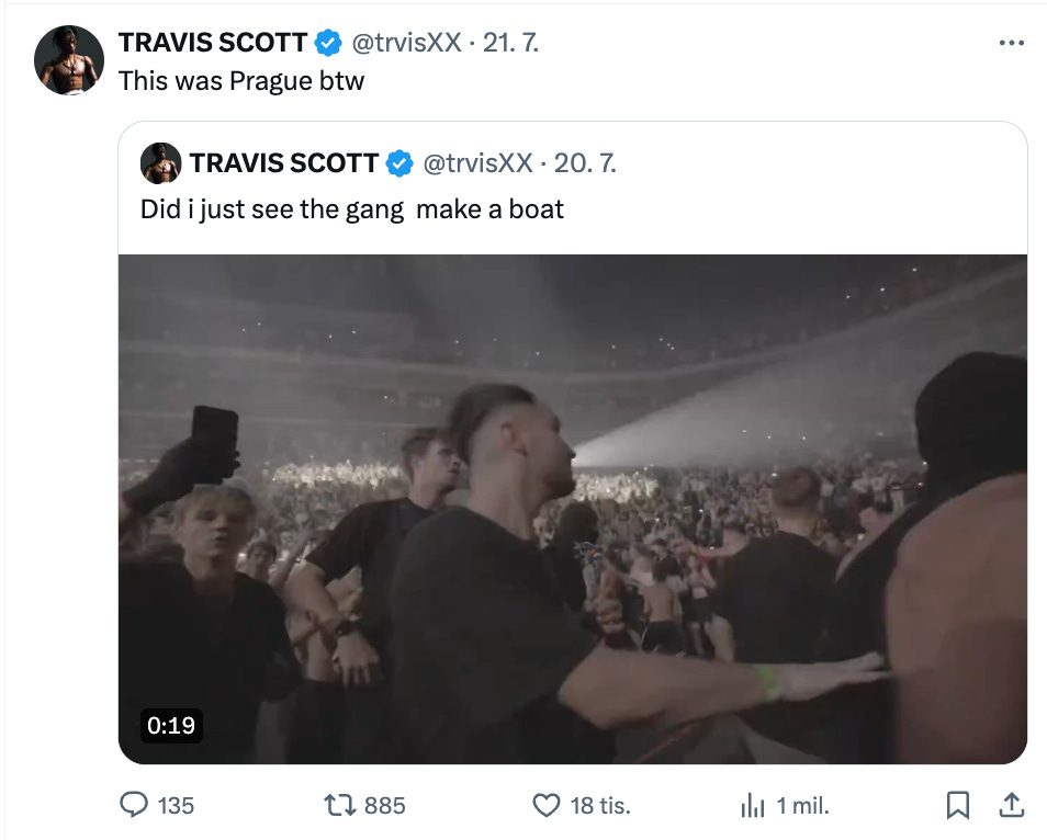 Je třeba si říct, že jestli něco Češi umí, tak je to vytvořit nezapomenutelnou atmosféru na koncertech nebo sportovních akcích všeho druhu. Tento týden se o tom přesvědčila i globální megahvězda Travis Scott.