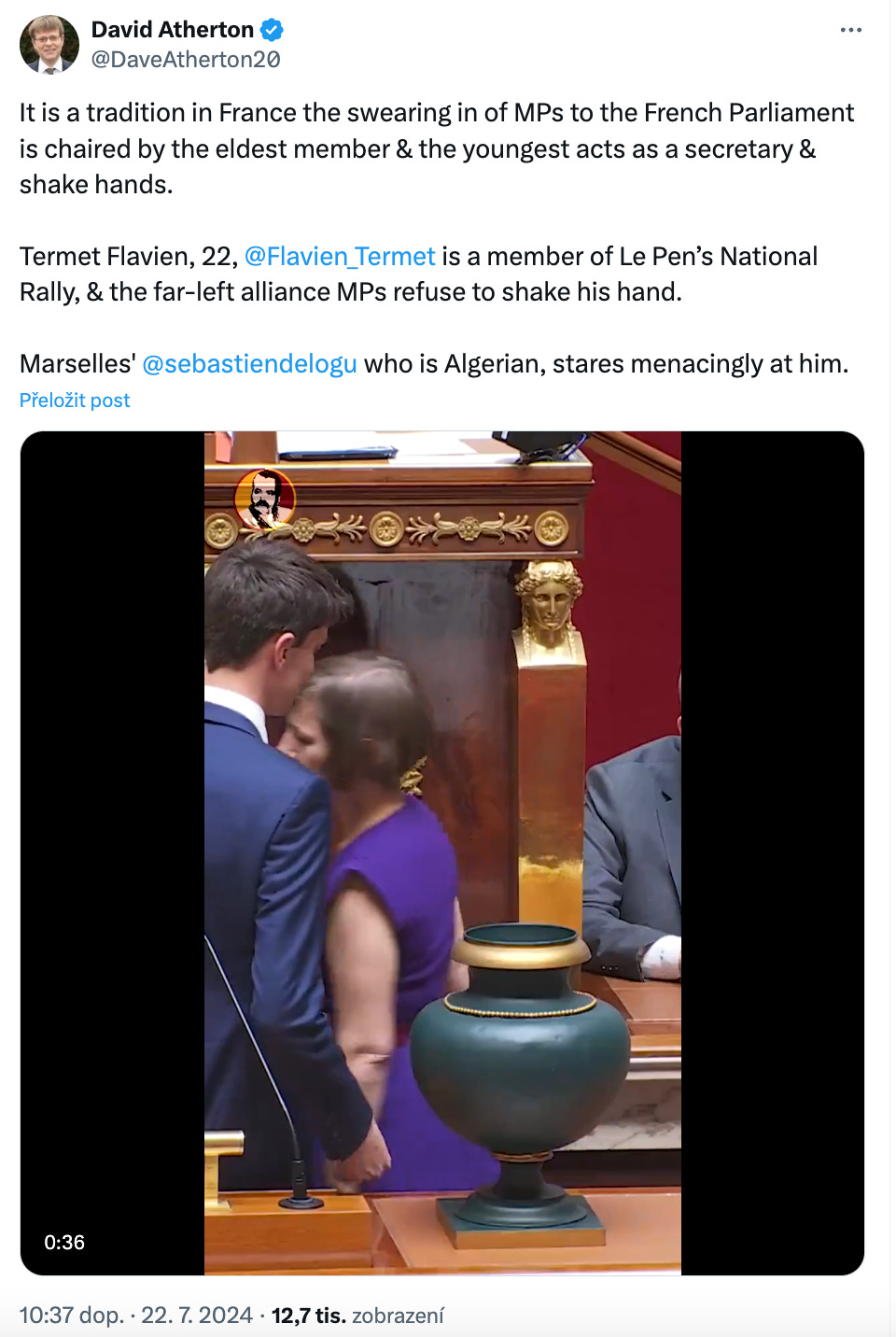A dívat se v téhle vypjaté době na Francii ještě bude hodně zajímavé. Spory jsou tam očividně tak hluboké a tak osobní, že noví poslanci z levicové koalice si odmítají potřást rukou s těmi z Národní fronty.