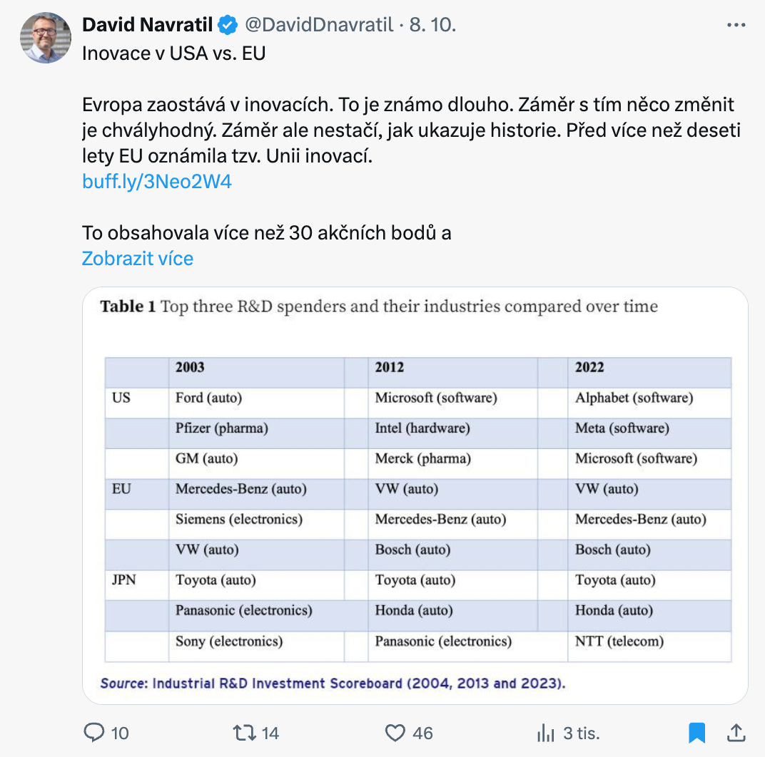 Věděli jste, že v EU vznikla kdysi tzv. Unie inovací? Jak to dopadlo popisuje trefně David Navrátil